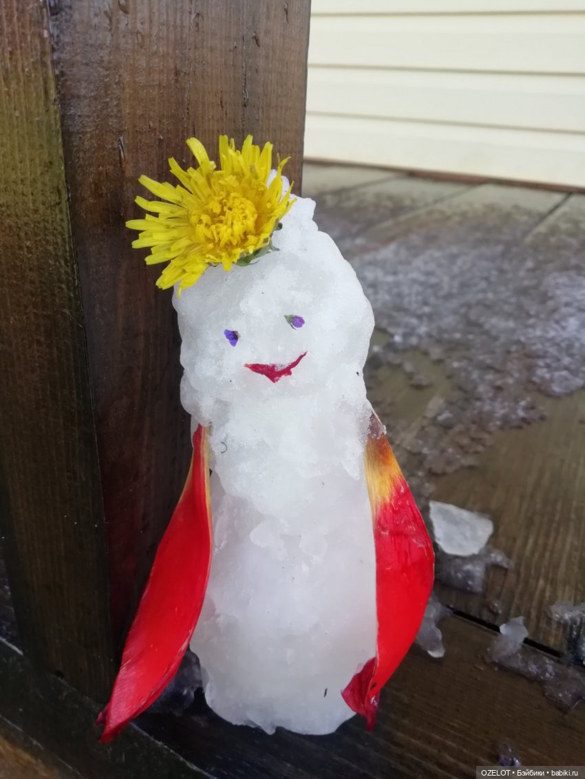 Снеговик уже оставил после себя лужицу с одуванчиками))) У него была короткая, но очень яркая жизнь !))