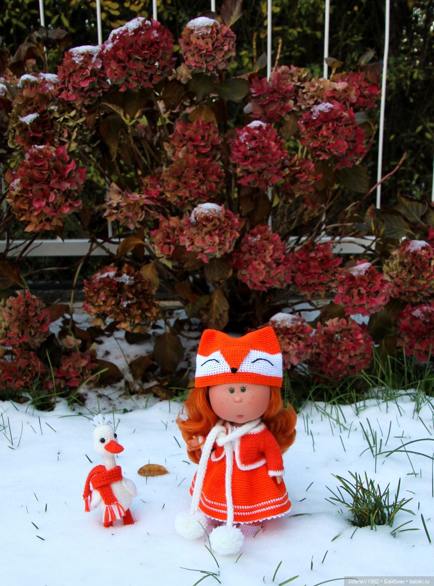 Какие яркие краски!😍 Чудесная Лисичка, Гусик с шарфом, осенняя гортензия, ставшая зимней! Очень красивая фотография!