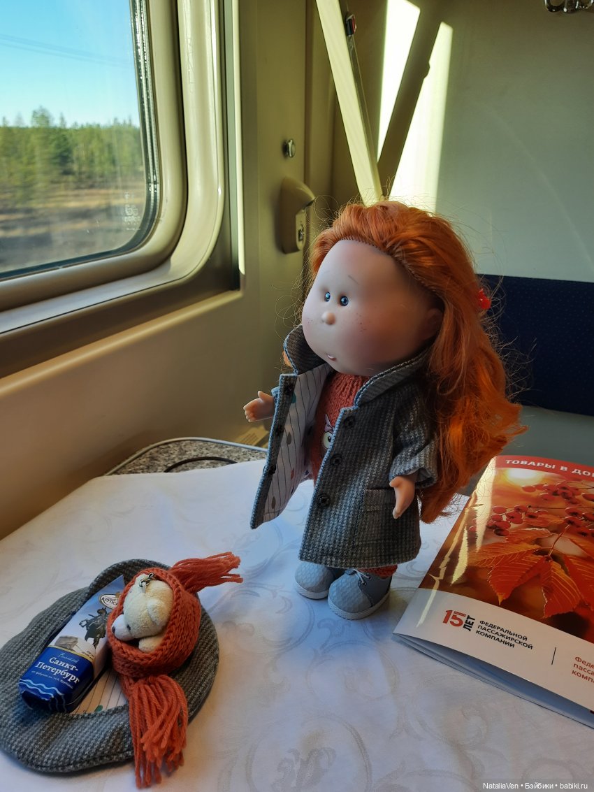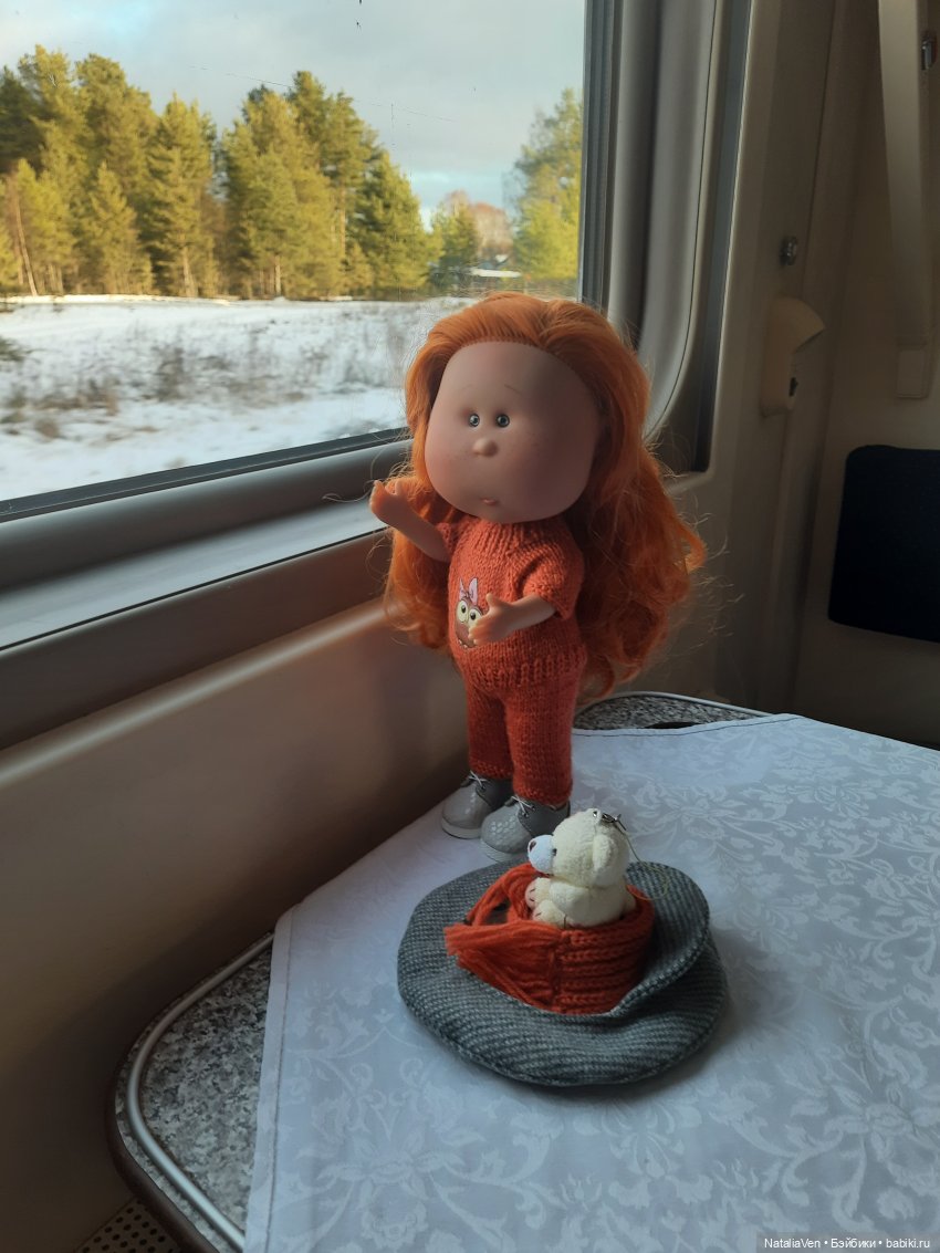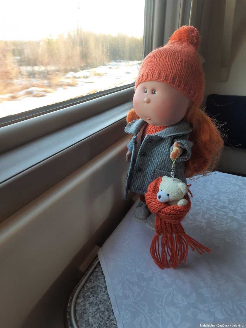 Иванку утеплили и снарядили в путь. Она и опомниться не успела, как оказалась… Нет, не в «Восточном экспрессе», как, возможно, хотела, но — в настоящем поезде. Впервые. И без Луны. Зато с Мини-Пухом, который очень старался остаться дома, но любопытство победило. Он даже обзавёлся шарфом.