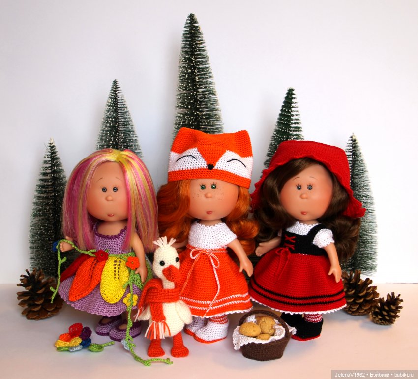 Мне не встретились, пришлось самой придумывать. А Мийки готовы к любому образу и очень рады вниманию к ним. Ещё Волка надо подходящего, была идея связать…