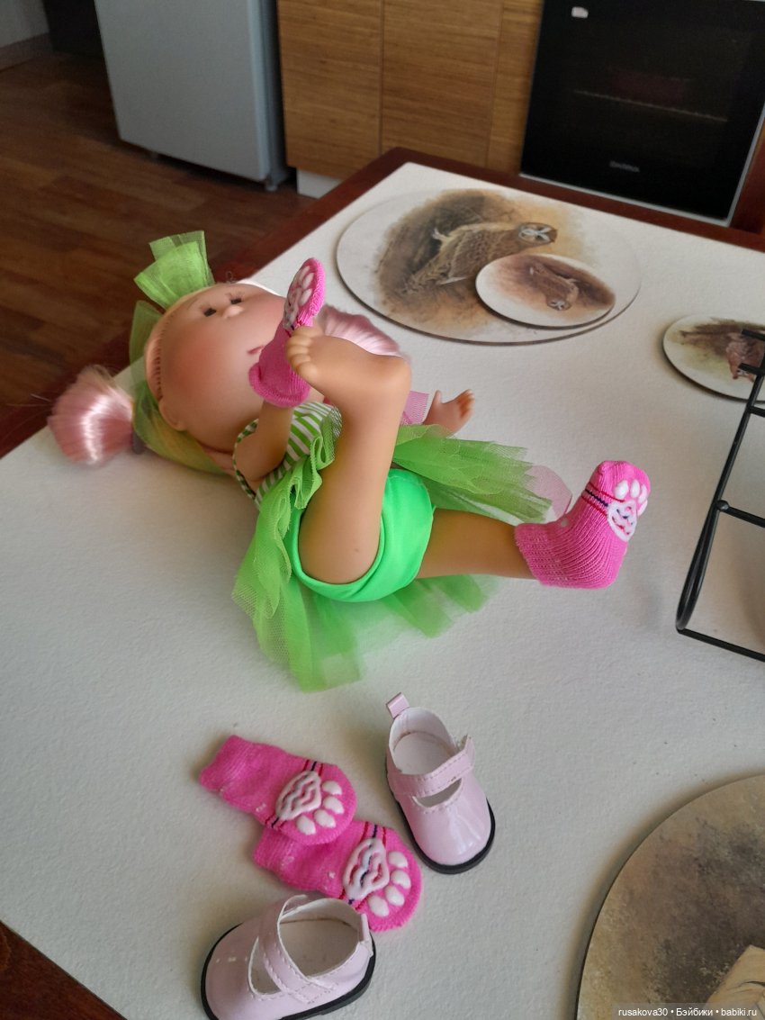 А вот обновки любим больше и я и куколки; поэтому носки для Мии вызывают особый восторг! Не за что бы не придумала так переиграть, мой пёсель не носит категорически такие вещи, в доме нет такого, а для кукол надо будет тоже отхватить! Очень прикольно смотрятся)