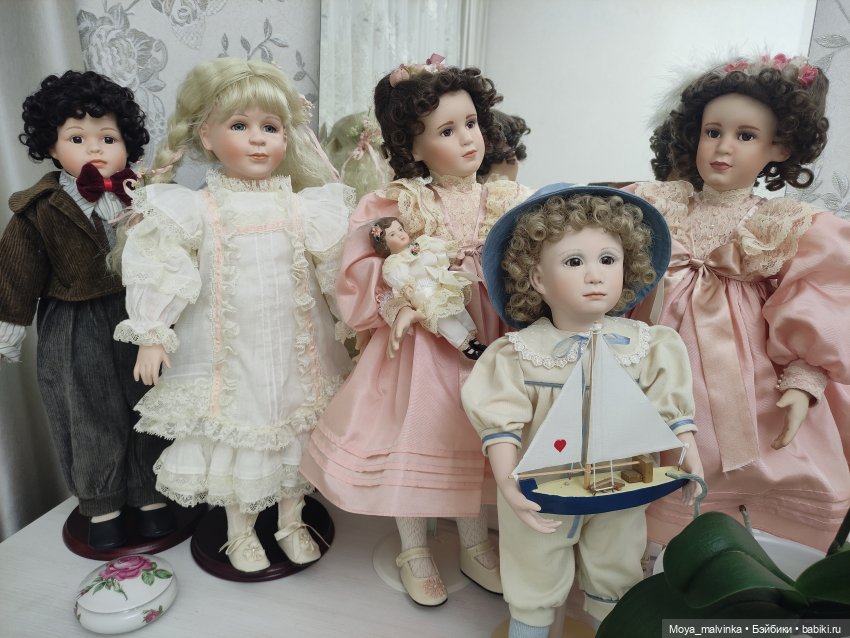 Эти удивительной по красоте девочки живут у меня около 7-ми лет, с прекрасным скульптом из высококачественного бисквитного фарфора и проникновенным взглядом; куколки Памелы украшают коллекции влюбленных в фарфоровых кукол, а раньше были фаворитами международных выставок и признаны во всем мире среди ценителей кукольного искусства. Я о них подробно рассказывала, как кто появился и кто за кем приехал, но спустя годы погружения в кукольный мир они не перестают меня радовать. Поэтому в серии публикаций о своей коллекции фарфорочек не могла их не показать снова., они достойны внимания. Их утонченность, изумительные черты настоящих девочек не оставляют равнодушным никого, кто их рассматривает и когда приходят гости, не посвященные в мир кукол, всегда обращают на них особое внимание.