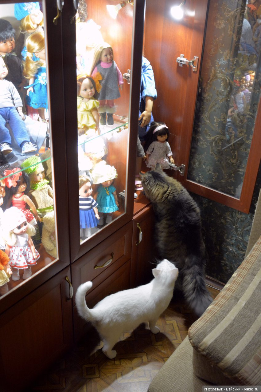 А для паолочек, как и для любых других кукол, конечно, лучше что-то закрытое, типа шкафа, чтобы защитить их от пыли и от вот таких неуёмных котофеев)
