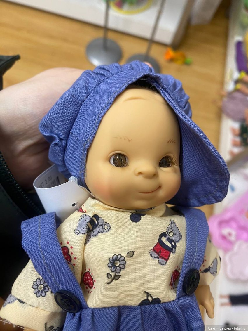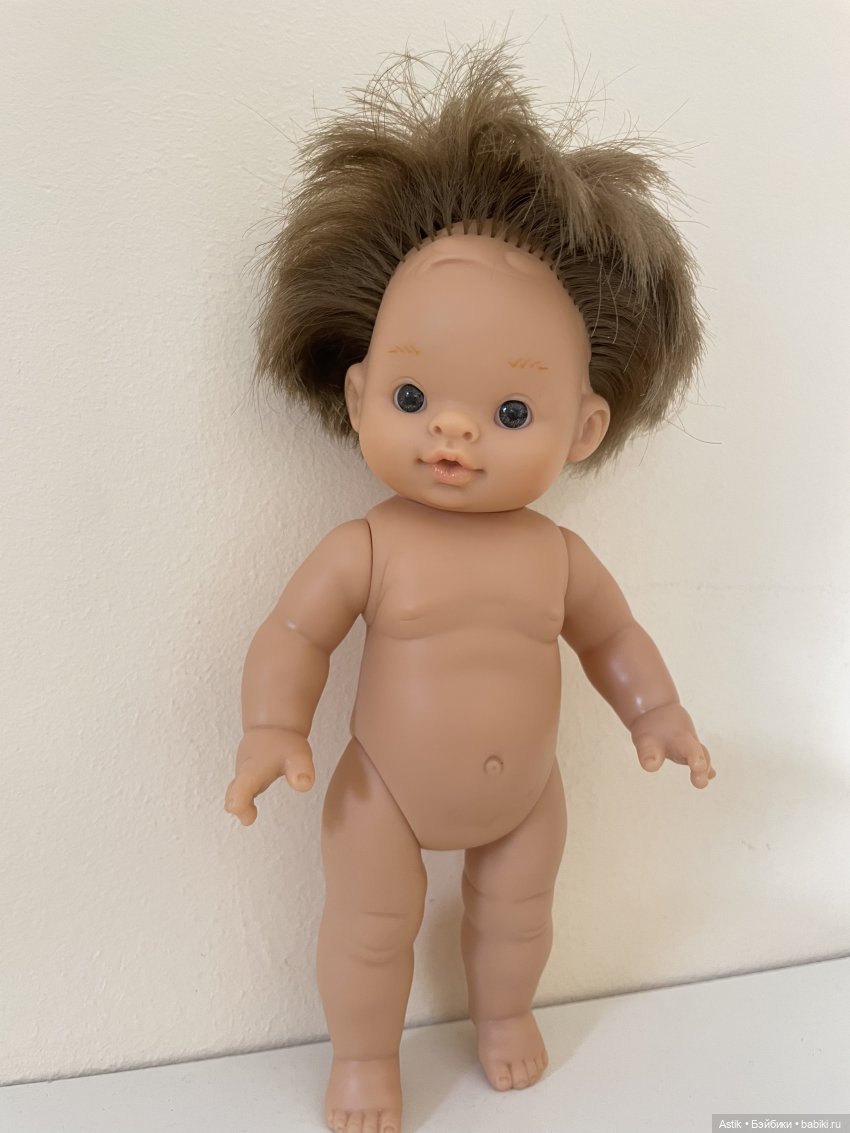 вот такой малыш у меня, был куплен без одежды, на спине Paola Reina, на шее Paola Reina 1996. По см я бы сказала 20-23, из-за волос