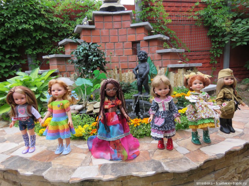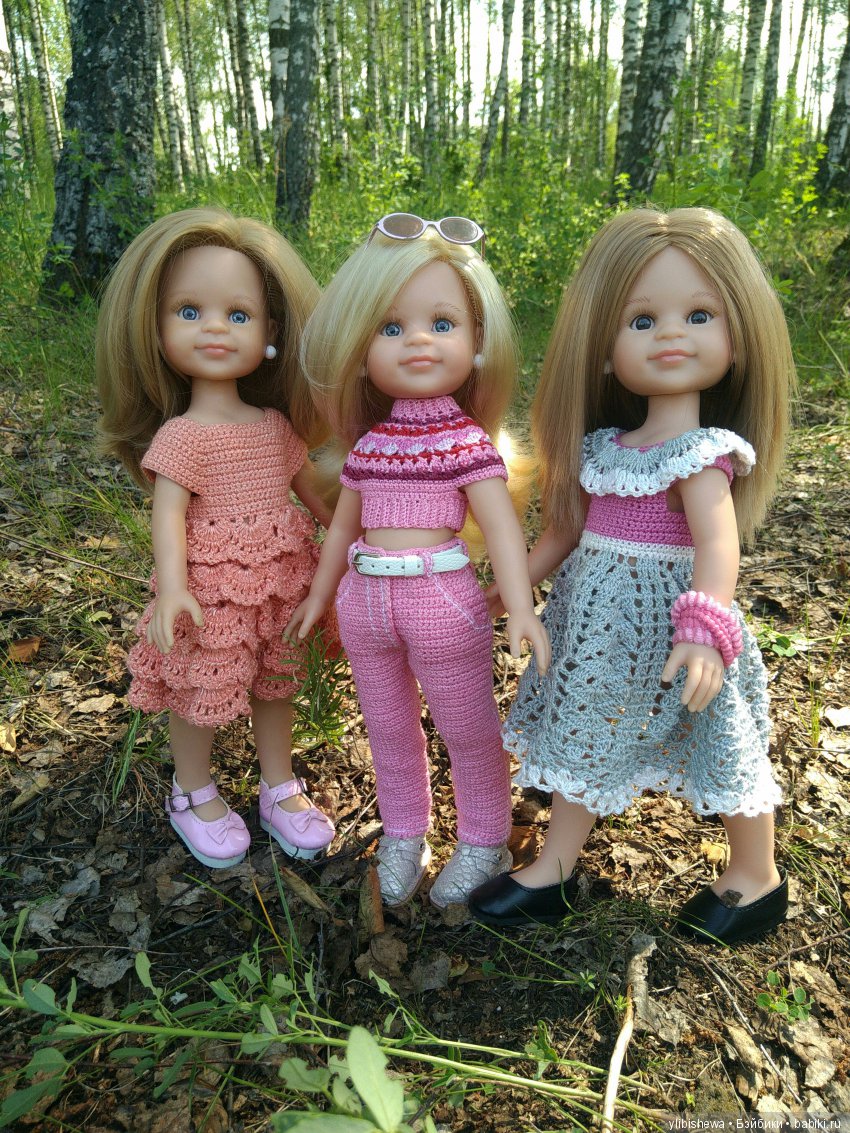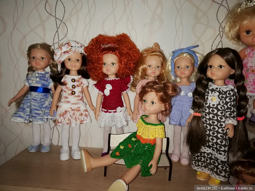 Очень я к этому платью прониклась, но покупать описание вязания не стала, мы же не ищем лёгких путей. Так интересно оказалось вязать его по фото! Целый квест получился. Конечно, я не остановилась на одном платье. А, с небольшими изменениями, связала наряды для всех своих Паолочек. Старалась попасть в колорит каждой, рассматривала их подолгу. И осознала, как-же они хороши! Новенькие такие яркие и статные. Смотрят уверенно и по взрослому. А старенькие, с их кривыми ножками и выпуклыми животиками — совсем ещё малышки! Теперь они мне дороги ещё больше, ведь каждая смотрится ярче в новом платье! Никак не могу насмотреться на них! Надеюсь, что и вам мои девочки понравятся!