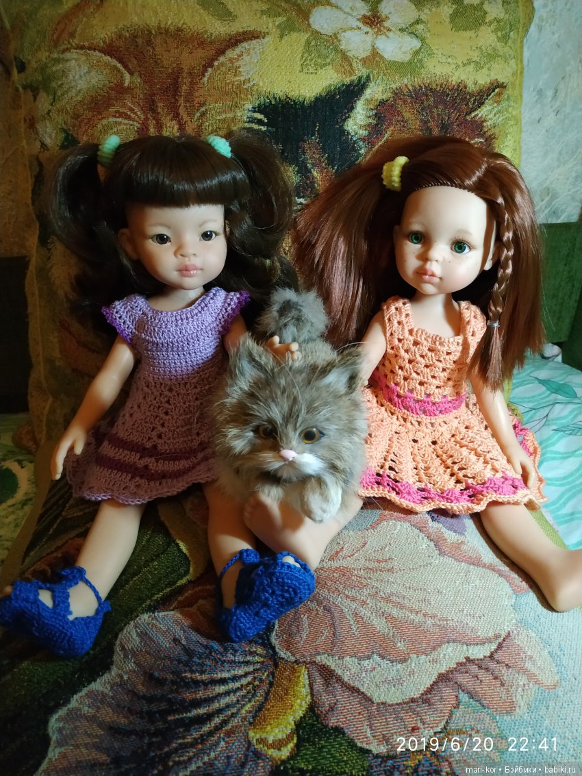 Давно я не уделяла внимания своим игровым куклам Паола Рейна. Манику, правда, свозила отдохнуть. Но, в остальном, не смотрела на них. Совсем перестала понимать ажиотаж вокруг старых выпусков, да и новые восторга не вызывали. Купила, по случаю, новых Клаудию и Кристи, хотела шить на них костюмы по «Игре престолов», но после финала, решила, что нужно от сериала отдохнуть, успокоиться немного. А тут, как раз, в рукодельной группе Веснянок в ВК, попалась на глаза замечательная модель вязаного платья от Светланы Парахиной.