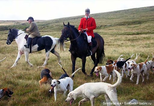 И обязательно английская охота, тут придется заморочится с собакой.