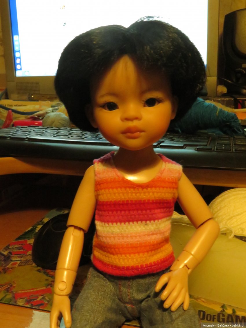 Покажу конечно. Сама парикмахер, но стричь кукол это другое, тем более мужская стрижка я в ней не сильна.Пол дня стригла. Но завтра, близко не нашла, где он сидит, а в других комнатах все уже спят))), меня не поймут если я с фонариком буду куклу искать.