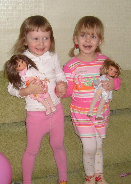 Моя доченька (справа) со своей новой куколкой Алёной и любимая подружка Алёна (слева) с куколкой Светой