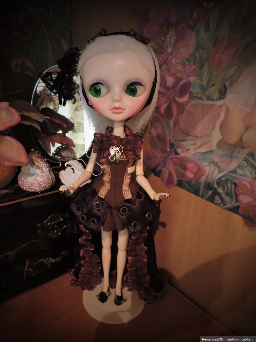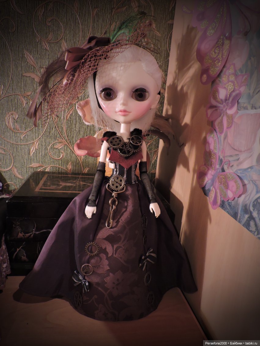 Некоторое время назад я задумала одеть куклу в стиле стимпанк. Я даже прочла несколько книг чтобы лучше прочувствовать стиль. Что-то мне понравилось, что-то нет. Больше нет, чем да. Слишком уж все там мрачно. И я даже решила отказать от этой затеи. Но потом подумала, а почему бы не придумать свою историю, кто меня осудит. Так появилась идея про девочку, ее верного пса мехатрона и счетную машину. Подходящий пес нашелся и стал превращаться в стимпанк создание. Очень классная счетная машина тоже. А вот с куклой была проблема. Ни одну из своих я в этом образе не видела. Но когда очень хочется, то все сбывается. И у меня появилась кукла, которая отлично вписалась в это образ. Знакомтесь Августа. Кукла Mia Darak-i doll
