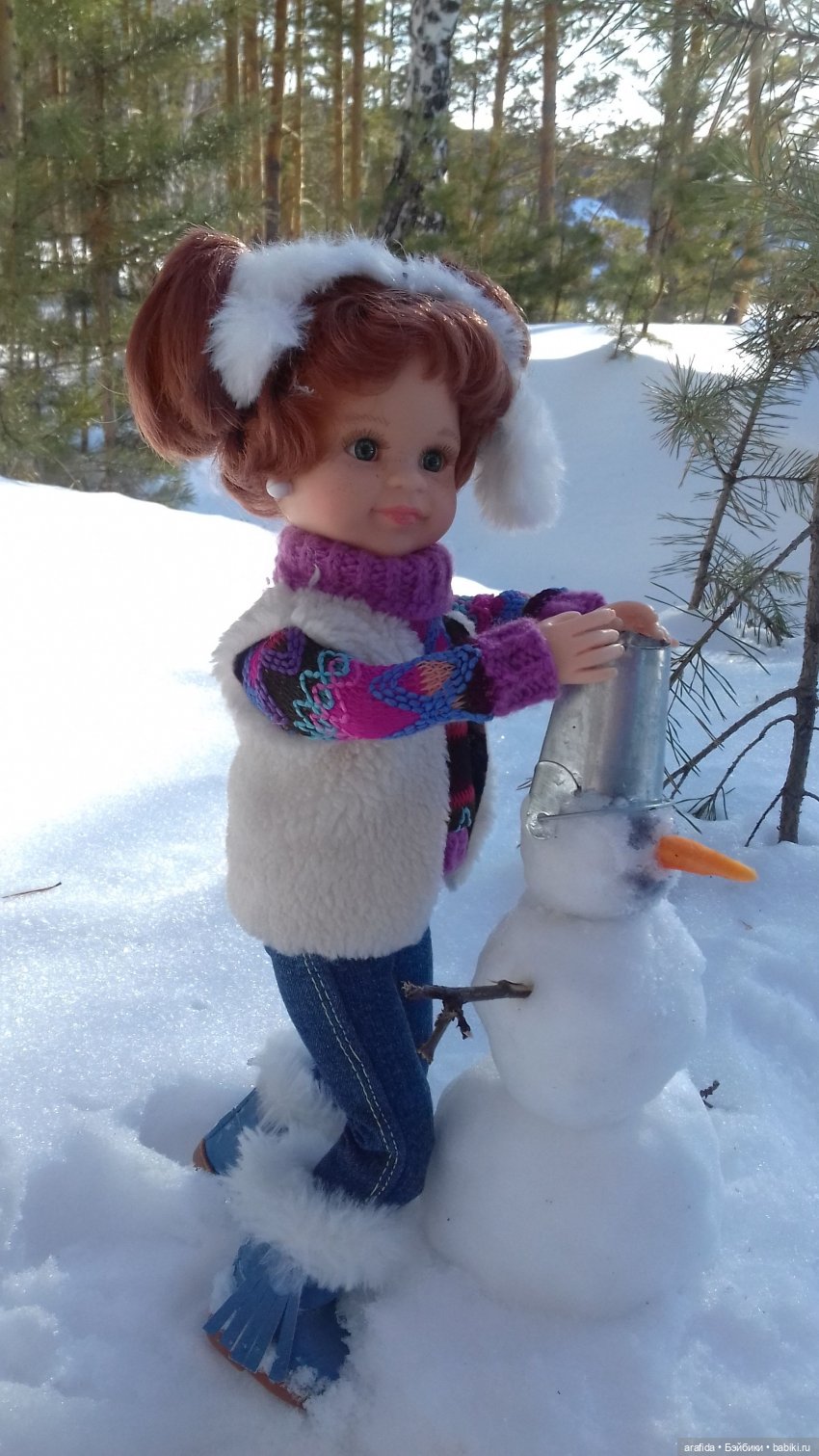 Женька, это еще одна наша подружка, лепила снеговика с моим братом Шуриком. Ой, они даже чуть не подрались, спорили, кому надевать ему ведро на голову