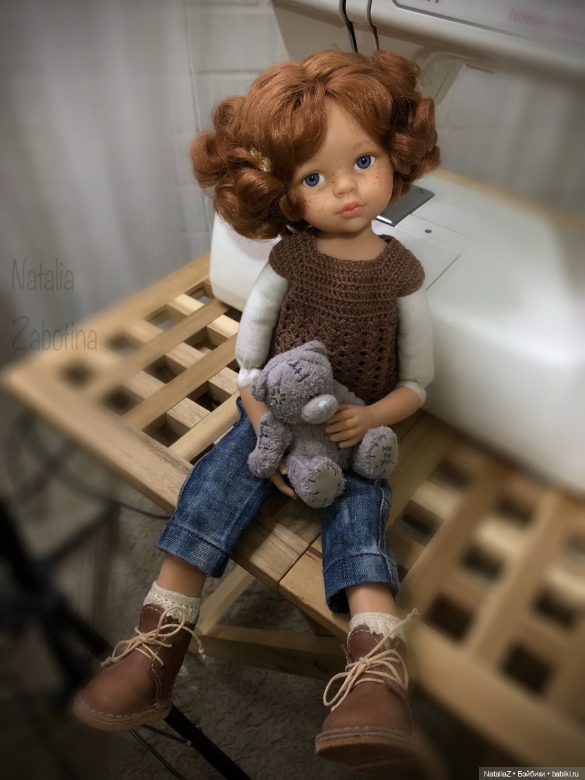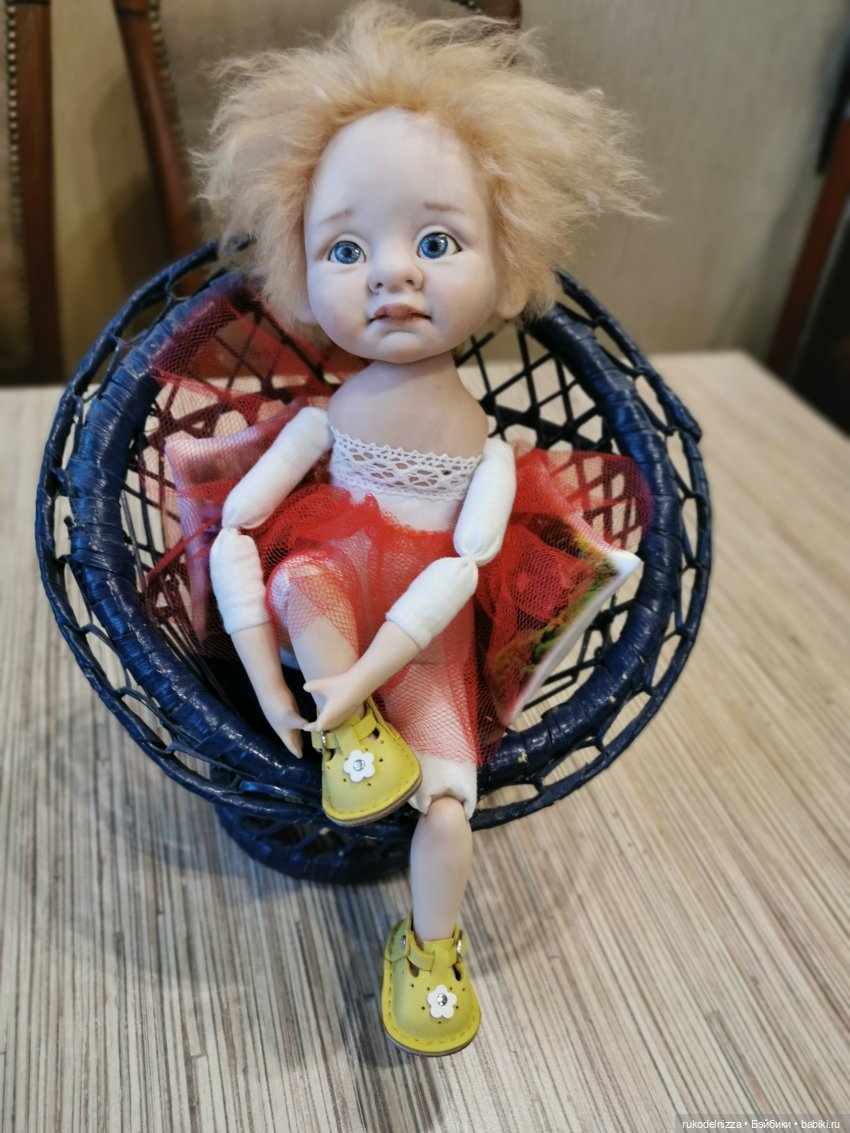 Чудный девчоныш оказалась по уютности, уже 5 раз съездила со мной по разным местам — тоже рекорд, особенно по нынешним временам, когда с куклами нет выездного почти совсем ничего… Но пока, в основном, работает ждунчиком — наряд все же тоже свой надо, чужие хорошо, но хочется лучше)