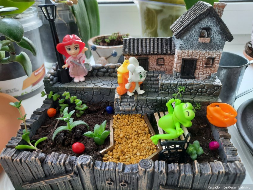 Вообще я очень увлеклась такими микросадиками в горшках. И дети в восторге, это же игра)