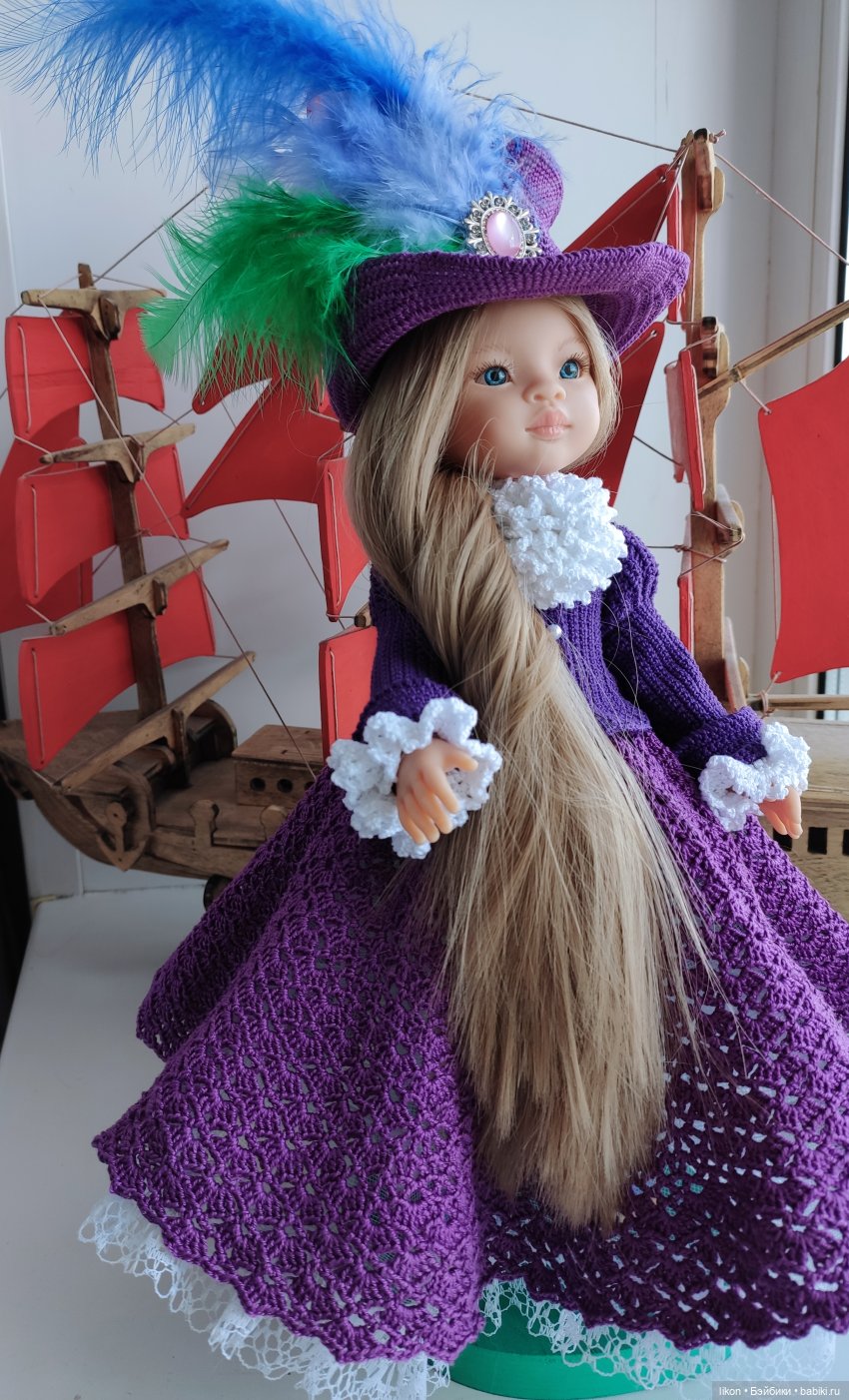 Долго у меня лежал лавандовый клубочек пряжи, но после появления этой куколки сразу стало понятно, что он просто дожидался эту девочку, чтобы превратиться в ее платьице👗
