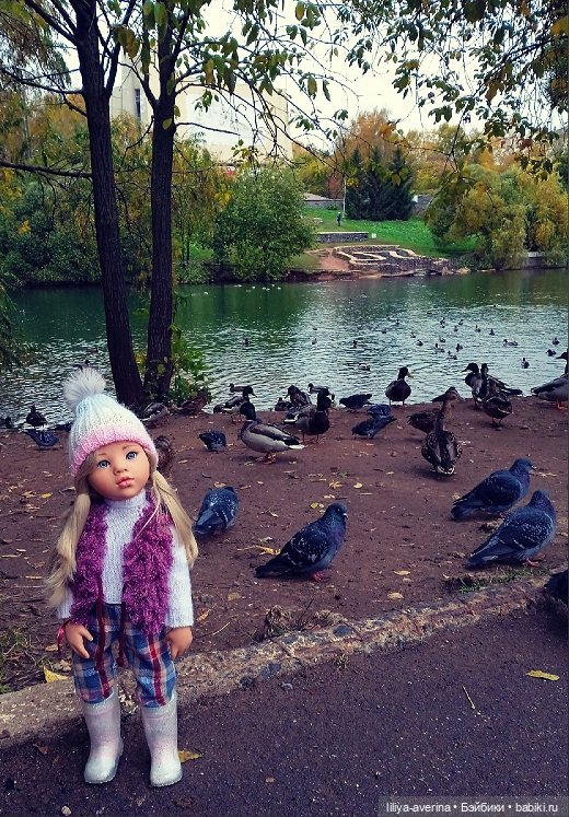 У Василиски от Паола Рейна (Paola Reina) сейчас, как у всех детей школьного возраста, каникулы. Вот и отправилась она с семьёй погостить в Краснодар. Неподалеку, где они поселились у родственников, есть прекрасный парк и старый пруд, на котором плавают уточки. На бережку прыгают голуби, они то уж знают, что их здесь всегда вкусно покормят , так как прогуливающиеся по парку и вдоль пруда отдыхающие приходят покормить уточек. Вот и Василиска пришла на пруд покормить уточек. Но как только она начала бросать уточкам крупу, её сразу окружили прожорливые голуби. Вот так в окружении голубей Василиска и получилась почти на всех фото😀.