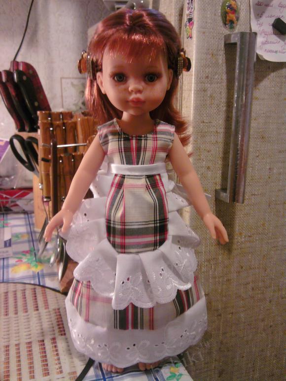 Вот второе платье Даши, сшитое по первоначальному образцу. Здесь я попыталась приблизиться к оригиналу, отсюда и ткани в клеточку и хлопковое шитье.