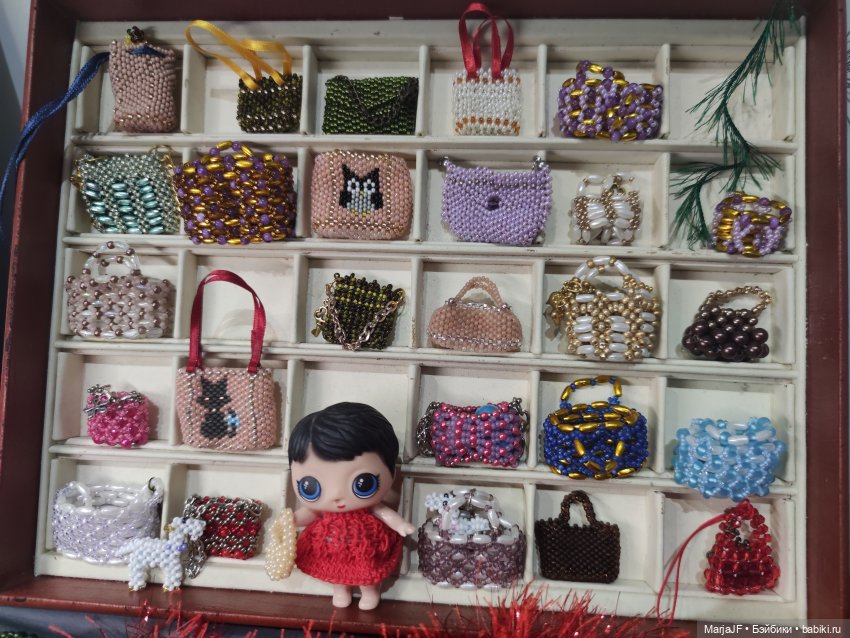 Бисерные моим куклам в основном внучка дарила, это проба пера у неё была...