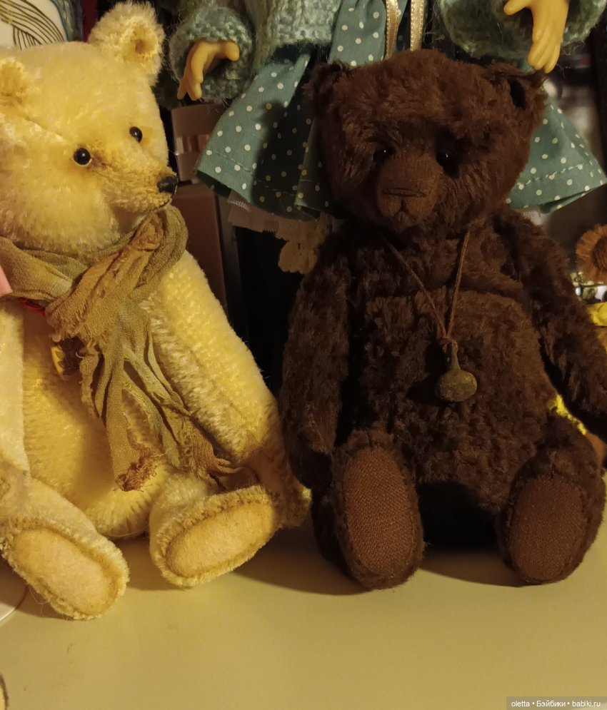Совсем недавно я показывала вам нового друга одной из своих куколок. Это был плюшевый медвежонок, набитый опилками. Я мечтала о нем более 5 лет, и вот он наконец у меня появился! Но после заказа того мишки я, прогуливаясь по интернету, наткнулась на мишек одной мастерицы и… Влюбилась! Как мне понравились эти плюшевые медведи! В голове звучало одно слово:ХОЧУ!
