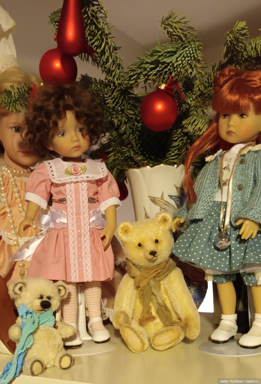 Все игрушки расписаны вручную, и рисунки не повторяются из года в год, так что наша ёлочка в этом году наряжена по-особенному! Глаз радуется! И куколки на ее фоне смотрятся чудесно.