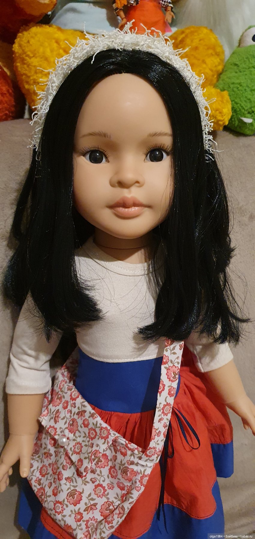 Приветствую всех гостей моего топика. У меня живет 2 куколки Paola Reina и я давно мечтала приобрести именно азиаточку 60 см с прямыми волосами. Мечту осуществила сегодня, прям подарок на Старый Новый год сделала себе. Но когда готовила топик, то увидела, что помимо отсутствующего бантика на одной туфельке у меня нет накидки и ободка ( обидно ). Следила за этой куколкой наверно месяца 3 и вот решилась приобрести, благо продавец находился в том же городе, что и я. Договорились и вот я еду за мечтой. Долетела я быстро, вынесли мне куколку… она вся в кошачьей шерсти, просто вся, с волосами тоже что то непонятное. Туфелька на каблуке погрызана немного…