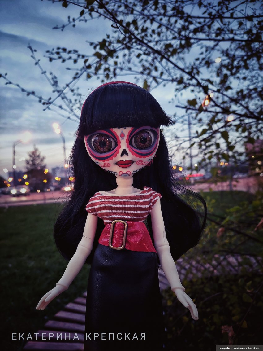 Эти девушки, Катринас, многим не по нраву. Что ж, они, действительно, странные и даже страшные для кого-то. Меня же эта девушка-скелет привлекла ожиданием от знакомства с ней каких-то новых эмоций, мне хотелось почувствовать её энергию, посмотреть, какая она на самом деле. Были у меня опасения, что мне с ней будет не комфортно, что у неё тёмная аура, что она злая. Но! Стоило мне только взять Иману Анну (именно так она мне представилась) в руки и заглянуть в её огромные глаза, как сразу стало понятно, все опасения на её счёт напрасны, мы точно подружимся! Имана Анна Катринас — это большая модница и романтичная барышня. Сегодня мы с ней любовались закатным солнышком в водном отражении. Очень душевно провели этот тёплый ласковый апрельский вечер!