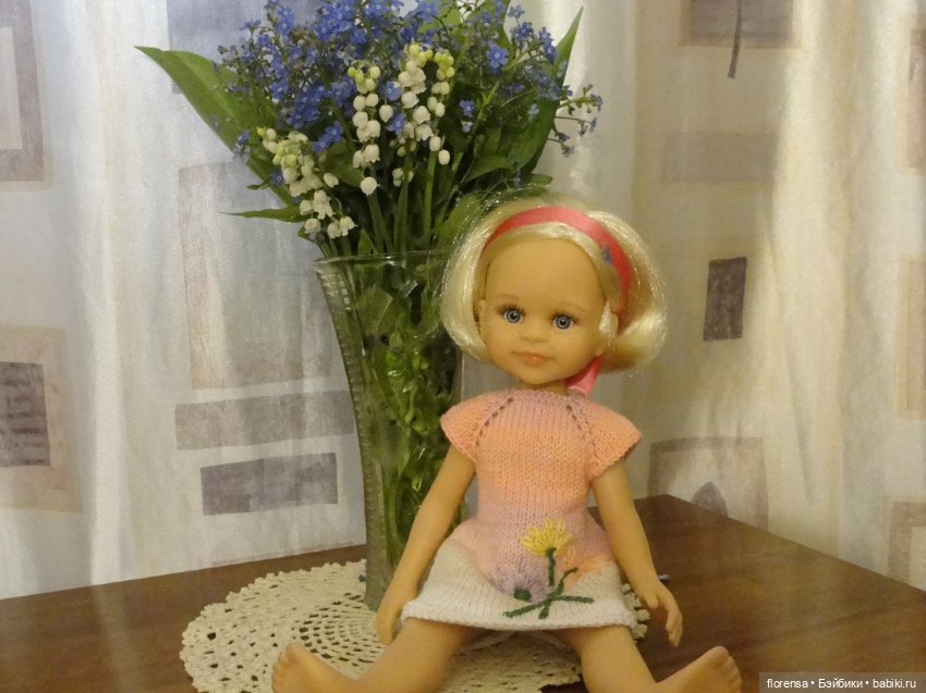Вечерком я уже устроилась в кресле со спицами. Нужно было примерить кукле наряд и продолжить вязание. И вдруг я взглянула на букет, Варвару и пошла за фотоаппаратом!