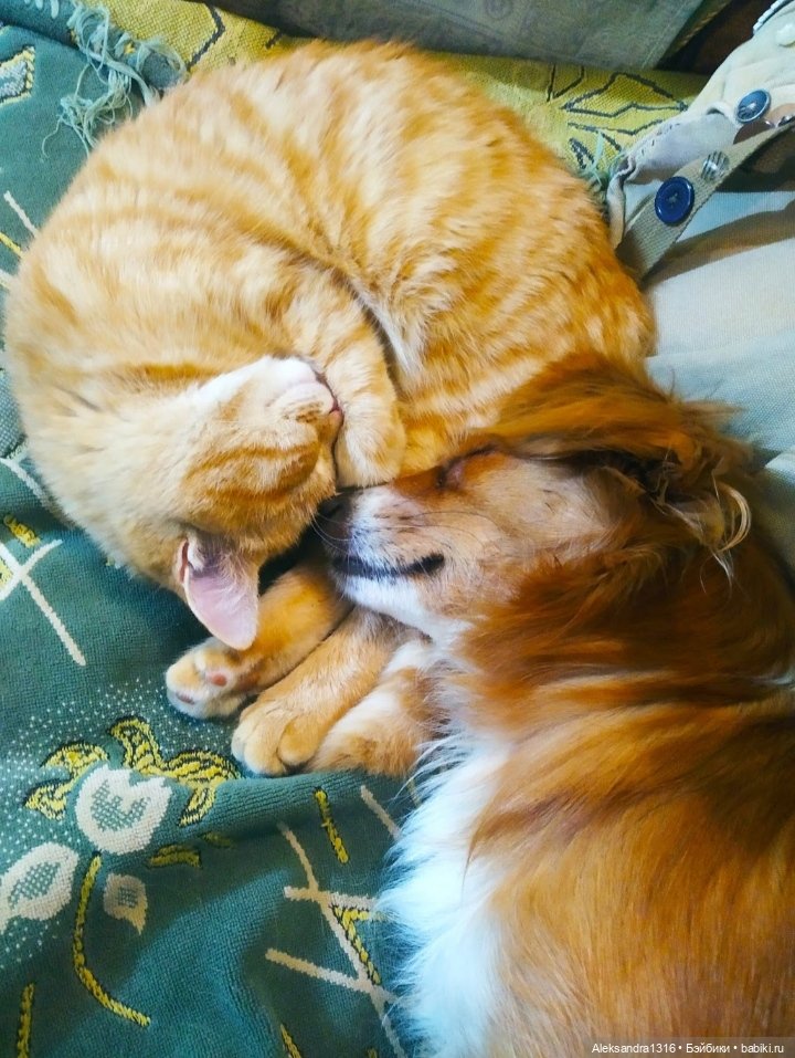 А рыжий — это старшенький мой. Избалованный, добрющий. Еле спасли его от вирусного заболевания и с тех пор каждый день лечим стоматит. Иначе не сможет жить. Вот они теперь всегда рядышком.