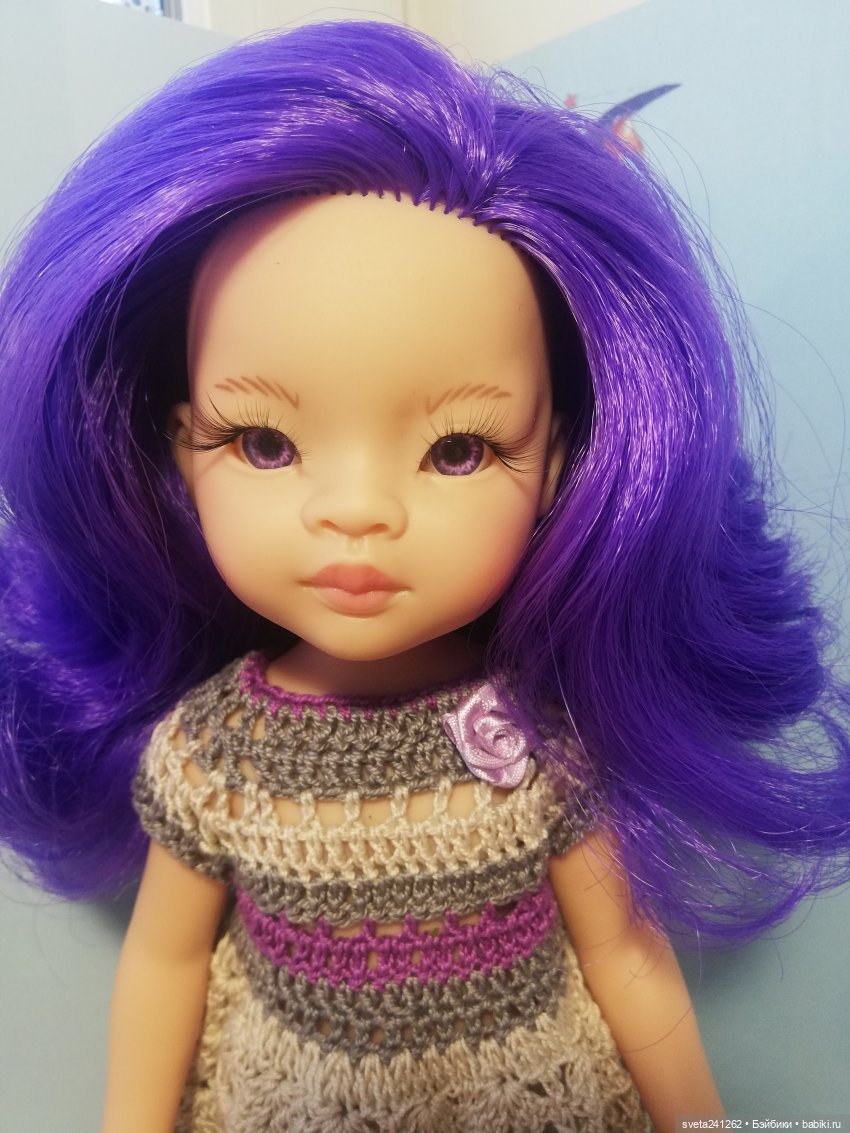 Когда в 2023 году выпустила фабрика Paola Reina кукол Мар с фиолетовым цветом волос, мне очень понравились эта красотка. Хотя азиатский молд мне не особо нравится. Но эта Мар просто шикарная! Заказала на Яндекс маркете, прислали ровненькую, красивую.