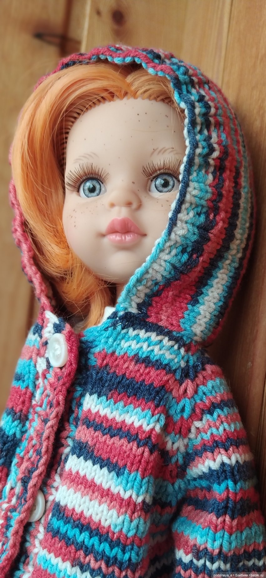 Пока мы приглядываемся друг к другу, привыкаем. Не знаю ещё сама, останется ли Эмми у меня надолго. Время покажет. Хочу пересадить её на шарнирное тело, чтобы оценить уже во всей красе, дубовое тело не для меня. А пока наряжаю её, радуясь удобному для вязания формату.