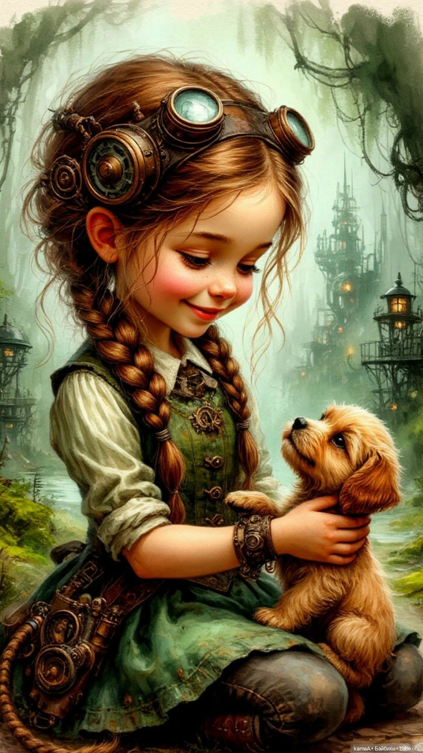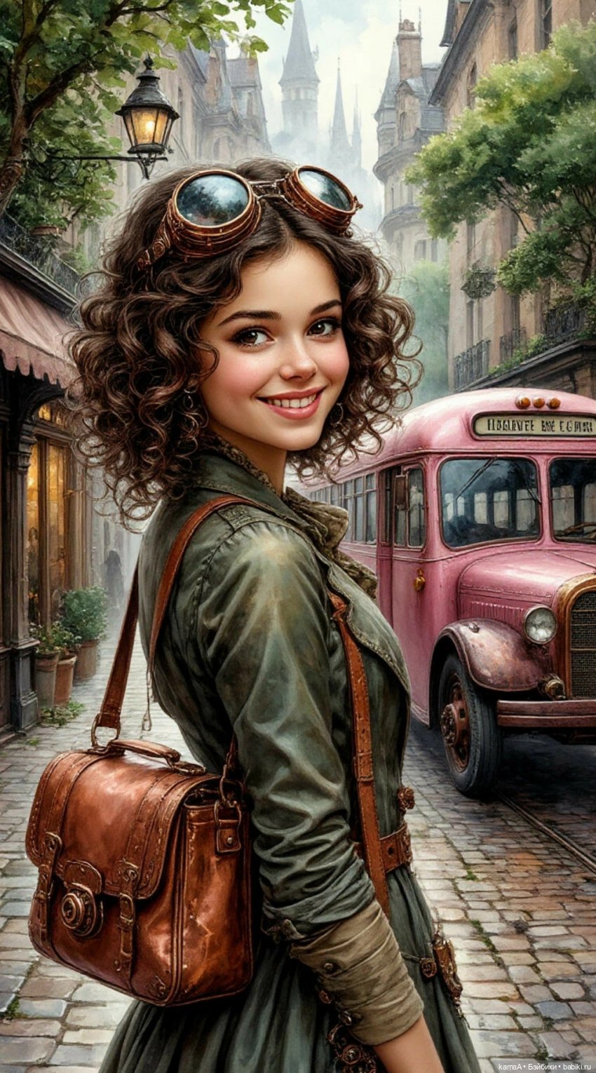 В стимпанке много направлений, мне по духу ближе жюльверновский. В том параллельном мире два солнца и не бывает зимы, небо чистое, ведь вся техника работает на чистейшем паре, народ умненький, сплошь путешественники и исследователи, выращивают дома цветы и изумруды.