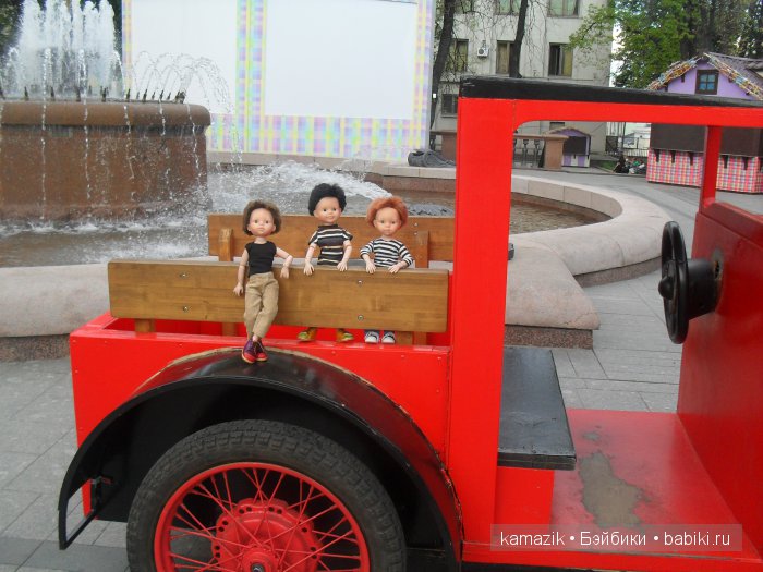Мои ребятки прибежали на модницу посмотреть, полюбоваться. Шарнирных тела только три, поэтому и мальчиков только троих выгуливала. Ким остался дома. А Керол превратилась в Валеру, Клёпа в Филю. А рыжий с самого начала был Кристи, но я его уже брала Андрюхой.