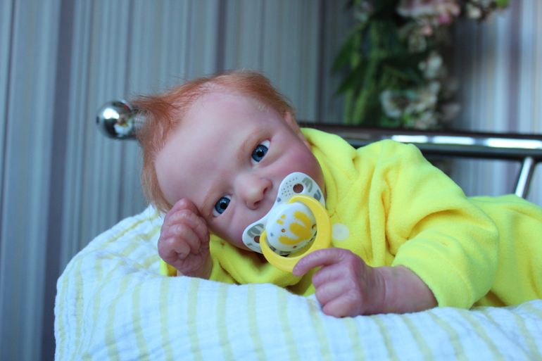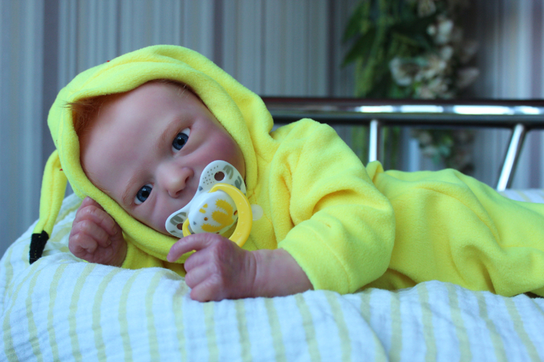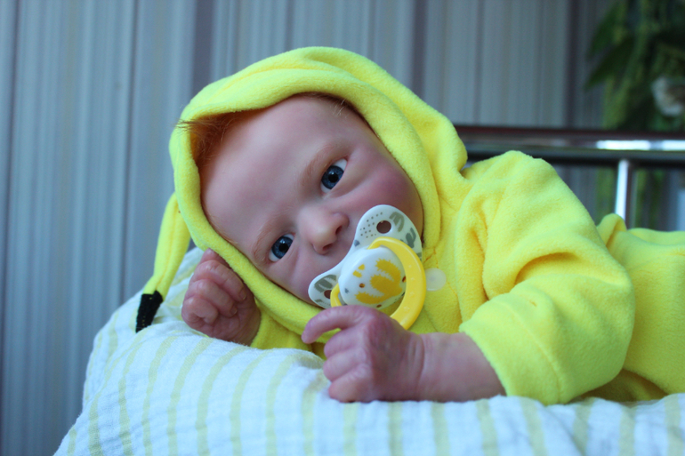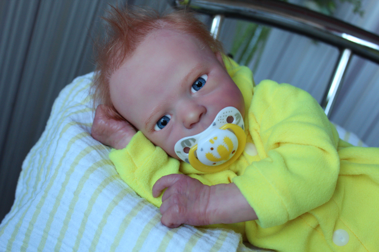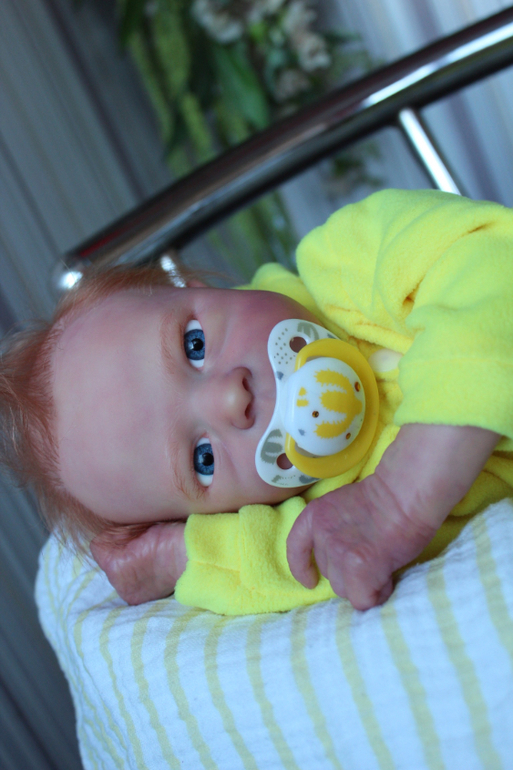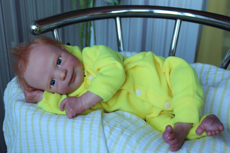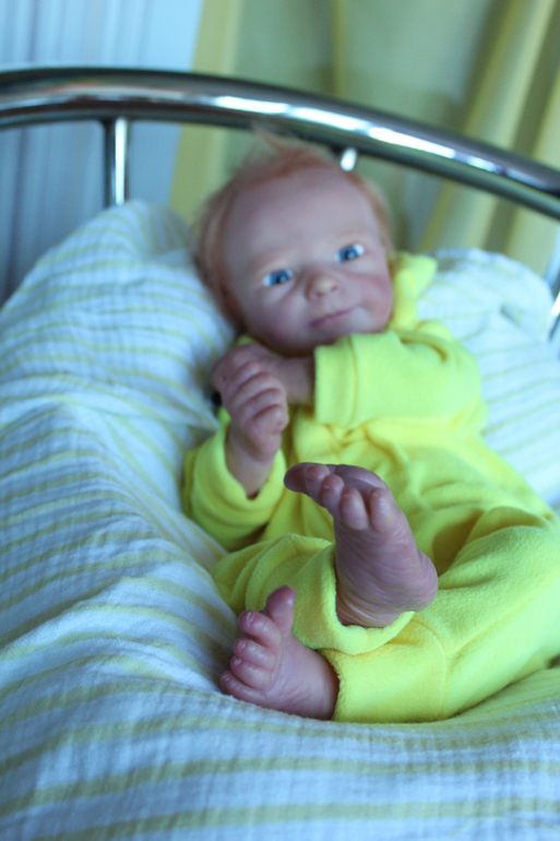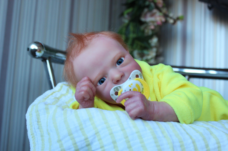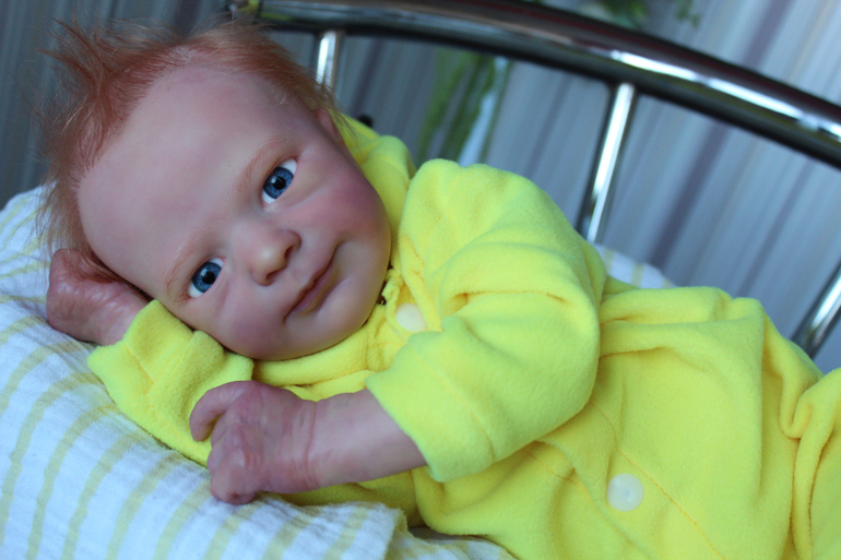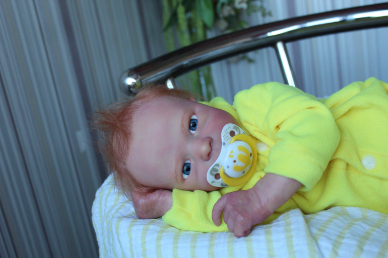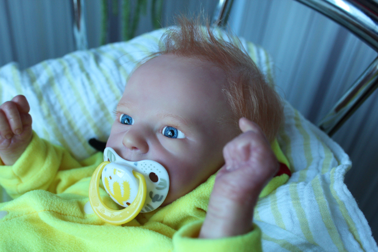 Малыш Аспен пришел в посылке с еще тремЯ комплектами. Я на него посмотрела и отложила подальше. Показался мне похожим на инопланетянина: тоненькие конечности, эти глазищи широко раскрытые..) просто побоялась его начинать делать XD. Но когда остальные куколки были готовы и даже разъехались по домам, а новые еще не пришли, мне пришлось взяться за странного малыша. Родился он не легко, но в итоге я довольна результатом)) еще раз убеждвюсь что у страха глаза велики, ведь я еще не делала таких новорожденных крох с открытыми глазами. Малыш получился очень милым с такой озорной ухмылочкой, а когда он с соской, то наоборот задумчивый) фото сделаны вечером у окна.
