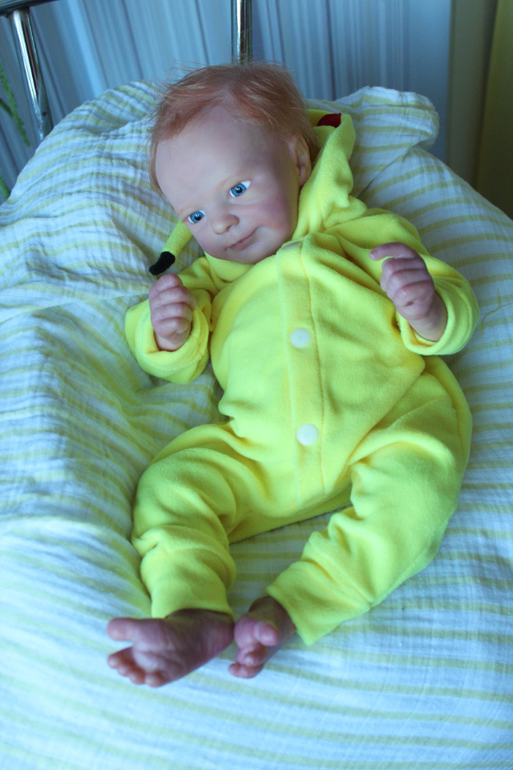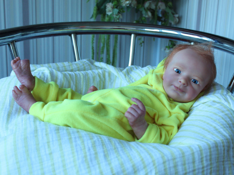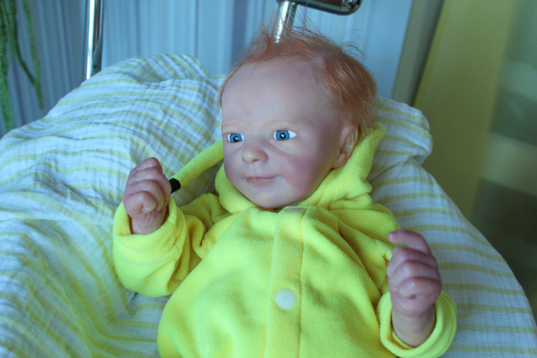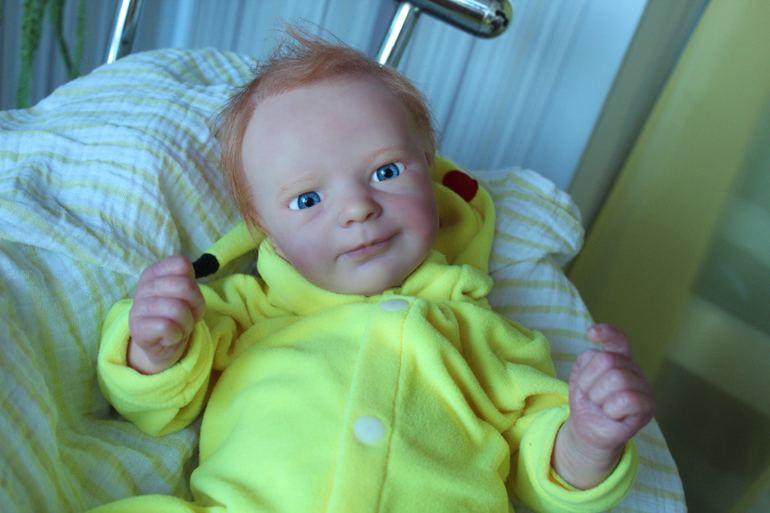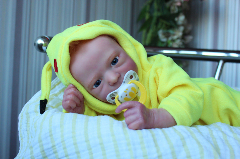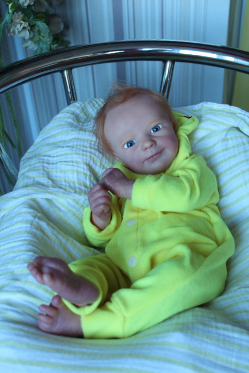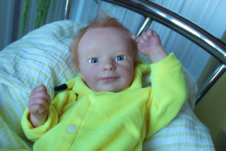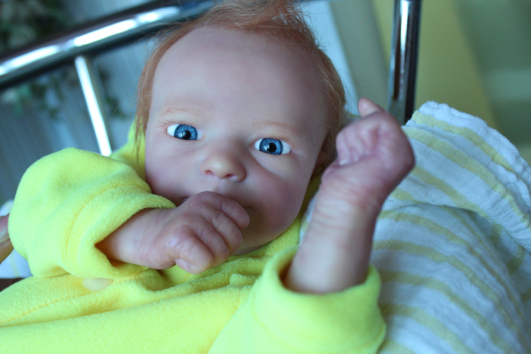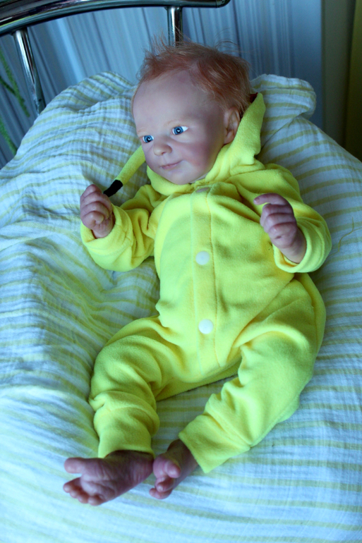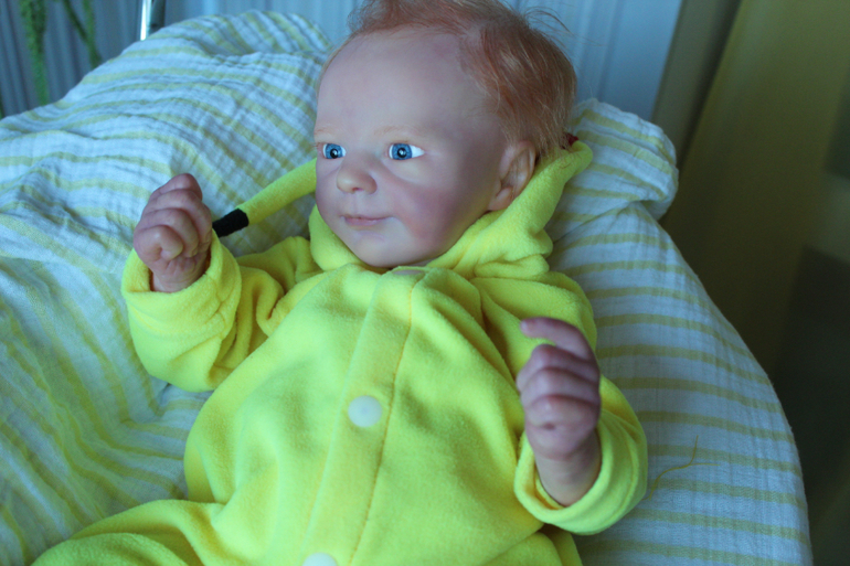 Малыш Аспен пришел в посылке с еще тремЯ комплектами. Я на него посмотрела и отложила подальше. Показался мне похожим на инопланетянина: тоненькие конечности, эти глазищи широко раскрытые..) просто побоялась его начинать делать XD. Но когда остальные куколки были готовы и даже разъехались по домам, а новые еще не пришли, мне пришлось взяться за странного малыша. Родился он не легко, но в итоге я довольна результатом)) еще раз убеждвюсь что у страха глаза велики, ведь я еще не делала таких новорожденных крох с открытыми глазами. Малыш получился очень милым с такой озорной ухмылочкой, а когда он с соской, то наоборот задумчивый) фото сделаны вечером у окна.
