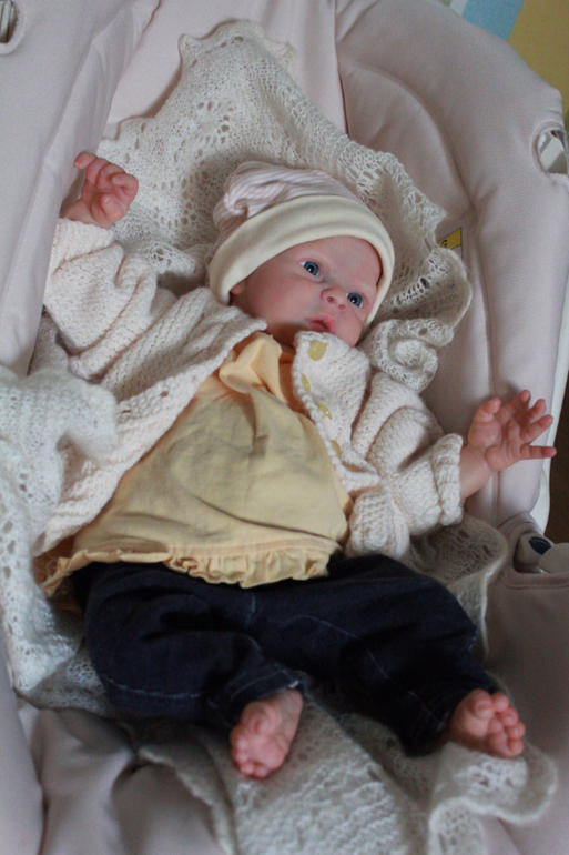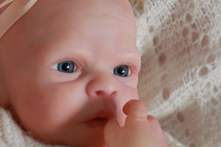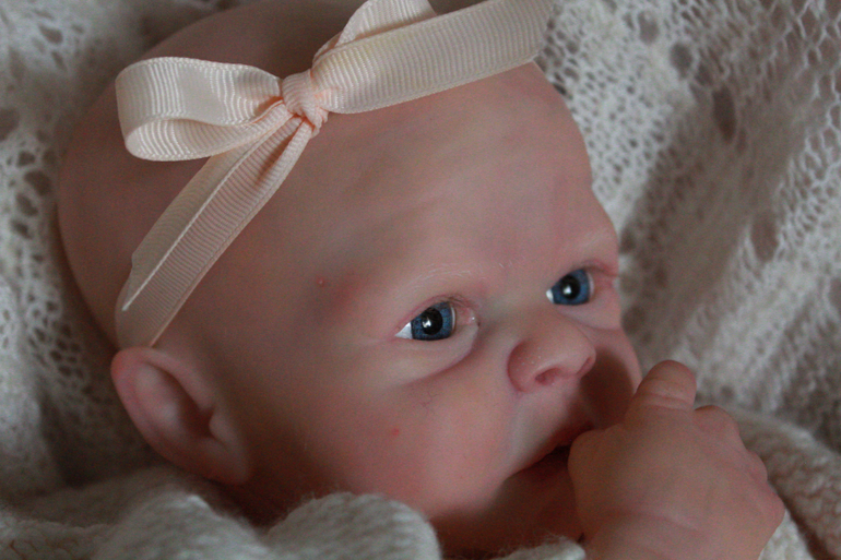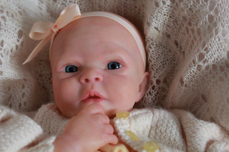 Я уже показывала как я дорабатывала данный молдик. Кажется результат не плохой. Я довольна. Думаю малышка так выглядит нежнее без этих глубоких складок на лобике.