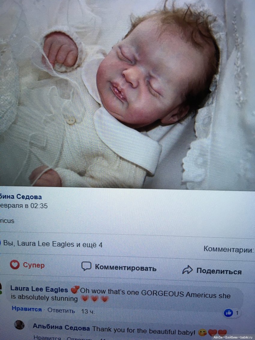 Хочу познакомить вас с ещё одной (второй у меня), чудесной, прехорошенькой малышкой реборн из замечательного молда Laura Lee Eagles, Americus.