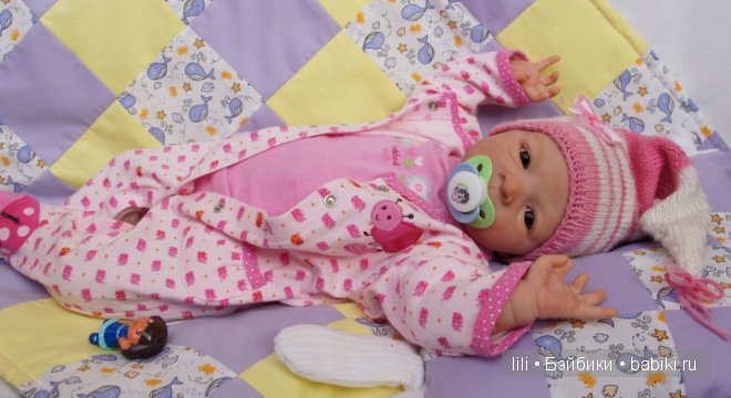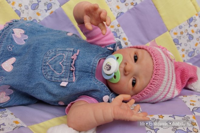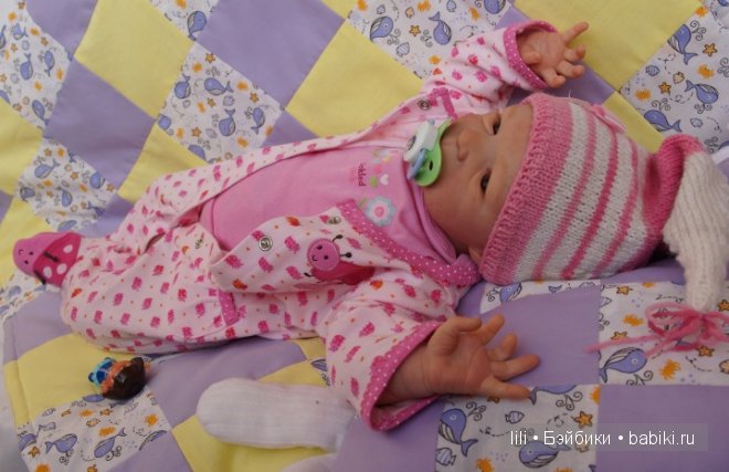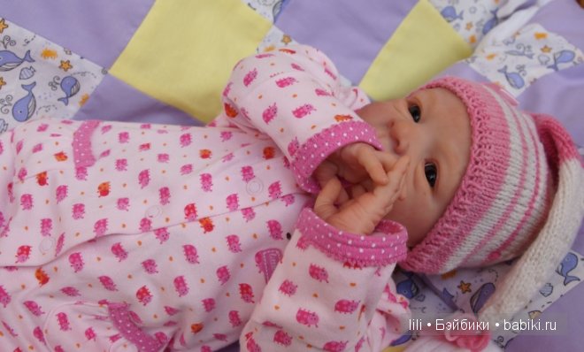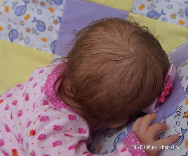 Здравствуйте, девочки! Сегодня я хочу поделиться еще одной радостью ))) — я закончила мою новую куколку реборн из молда Amy от Alga Auer. Мамочка назвала малышку Элиной. Молд бесподобен, потрясающая проработка всего-всего… Роспись у малышки нежная, но совсем малышковая, мраморность, покраснения, капилляры, всего в меру? есть магнитная соска и заколочка. Кажется получился здоровый младенчик. Очень понравилось именно такая постановка глаз — в сторону и еще ей кажется идет легкая косина к носу. Мамочка разрешила мне самой выбрать этот момент ))). Посмотрите, какая милая лапушка у меня получилась: