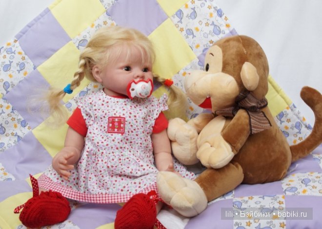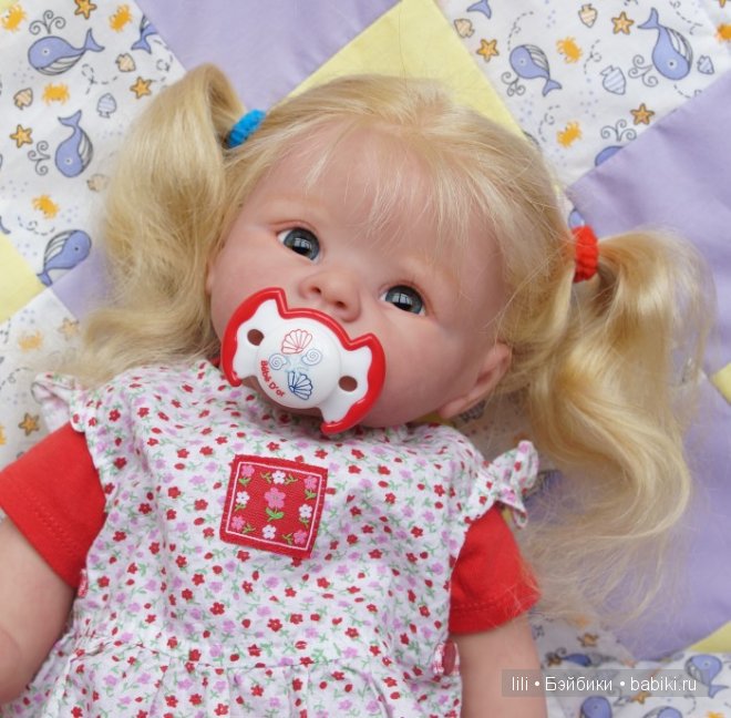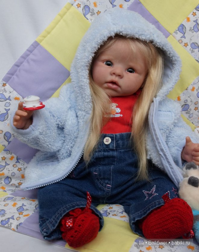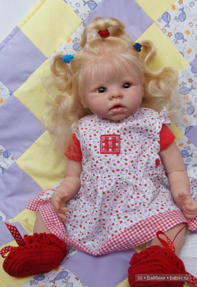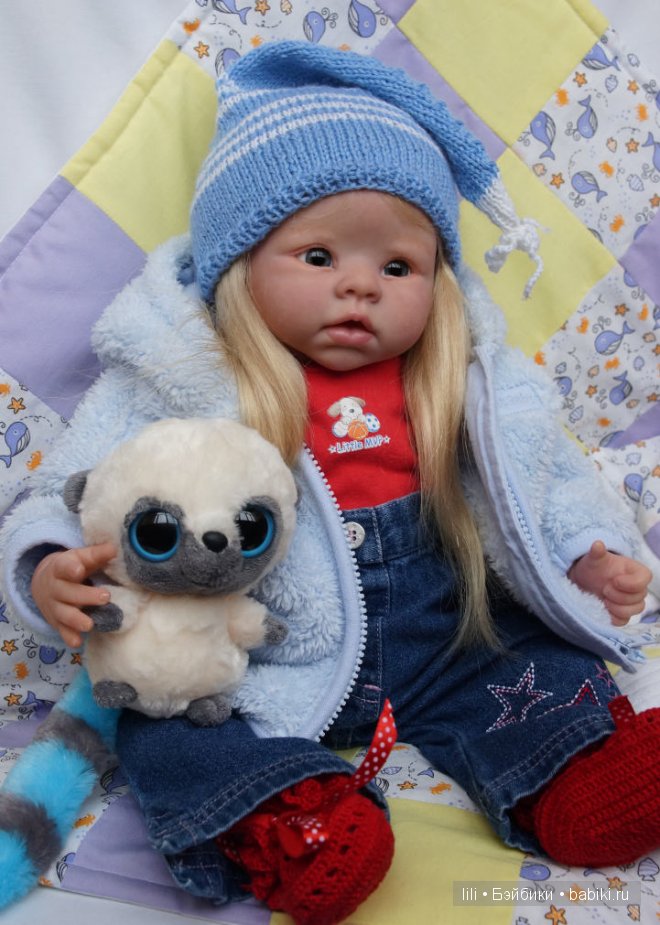 Здравствуйте, девочки! Cегодня хочу показаться с моей новой девочкой Аришей. Это моя 5 ))) кукла реборн из молда Krista. Будет еще 6 и 7 скоро ))) Очень нравится мне ее личико, такую красоту ничем не испортишь, ей к лицу любой образ — блондинка, брюнетка, рыжик… У Аришеньки уже есть мамочка, этот образ придумала она — светлые длинные волосы, голубые глазки, легкие бровки и яркие губки. Честно скажу, что не уверена была, что такие волосы будут красиво смотреться на куколке, но сейчас очень довольна результатом :). Только погода подвела, темно, не хватает света. Хочу накрутить на ночь волосики Арише и завтра показаться еще разок… А сейчас приглашаю всех в гости! на нас посмотреть: