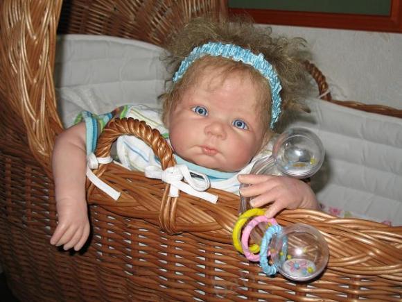 Я, признаться, такого цвета глазок пока больше ни у одного реборна не видела. А когда девочка ко мне только летела, (из Америки) я боялась понравятся ли мне в натуре, живьём, её глазки. Увидела — и осталась ооочень довольна!