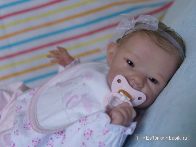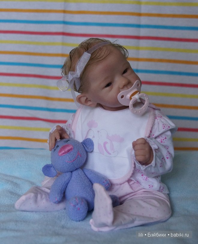 Здравствуйте, девочки! Сегодня наконец-то у меня родилась моя новая детка — малышка реборн Салли. Очень необычная, позитивная, запоминающаяся детка. Наверное она такая благодаря своим ушками, в не расписанном виде — напоминает бабочку :). Очень понравилось с ней работать, винил у этого молда немного прозрачный. Наверное у всех молдов Бонни Браун он такой? Сделана детка на заказ, надеемся понравится нашей мамочке. Столкнулась с очень серьезной проблемой, не могла вставить глаза — никакие! заявлено 20 мм, перемерила всякие размеры, и шарики и таблетки, но ничего не становится правильно. Может быть она хочет акрил, а не стекло? Вот так у меня получилось в итоге: