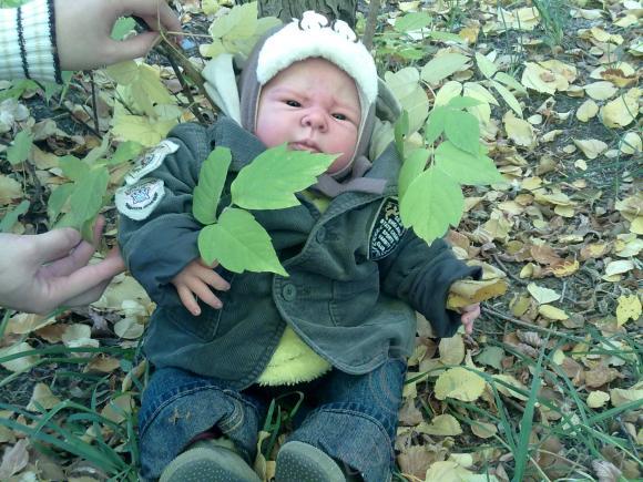 И фотки отличные, особенно понравилась та, где дитёныш желтый листик держит в своей маленькой ручке.