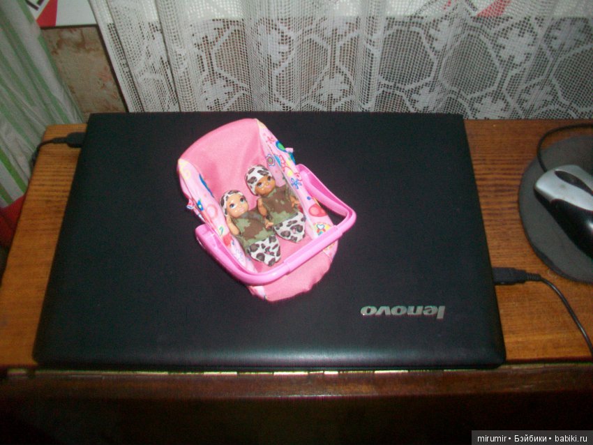 Я его в руках повертела и обратно на полку поставила. Таких я одно время везде по городу замечала, но как-то всегда проходила мимо, потому что и так у меня их уже трое, куда мне еще? Но когда в моей семейке куклят появилось 5 лялек с карими глазами, я подумала, почему бы мне такого узкоглазого пупса тоже не приобрести? Короче, я четыре дня терпела, а потом пошла в Ашан. Прихожу туда, а там на двух пустых полках из этой сери «Детский сад» есть только одна-единственная кукляшка и именно та или точно такая, какую я смотрела. Потому что она была в переноске, хотя тогда там выбор был, то есть куклы были с разными аксессуарами – коляска, ванночка, качели и что-то еще. Но я про себя подумала, что именно переноска мне для Пети и Павлика очень пригодится. И вот взяла я с полки этот единственный прозрачный кубик, в котором кукла находится, и почудилось мне, что она ко мне руки протянула и говорит: «Мама! Ты пришла!». Я прямо в шоке была! Дождалась, мол, она меня. Естественно, я ее купила, а потом Вадя (она же ВадИма или ВадимА, кому, как нравится) весь вечер знакомилась со своими новыми сестренками и братишками, а я делала фотографии этой встречи.