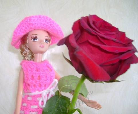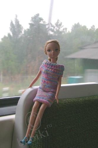 Костюмчик на девочке связан крючком (не сами, покупали), он барбейского формата, ей великоват, зато по цвету очень подходит под ее типаж…