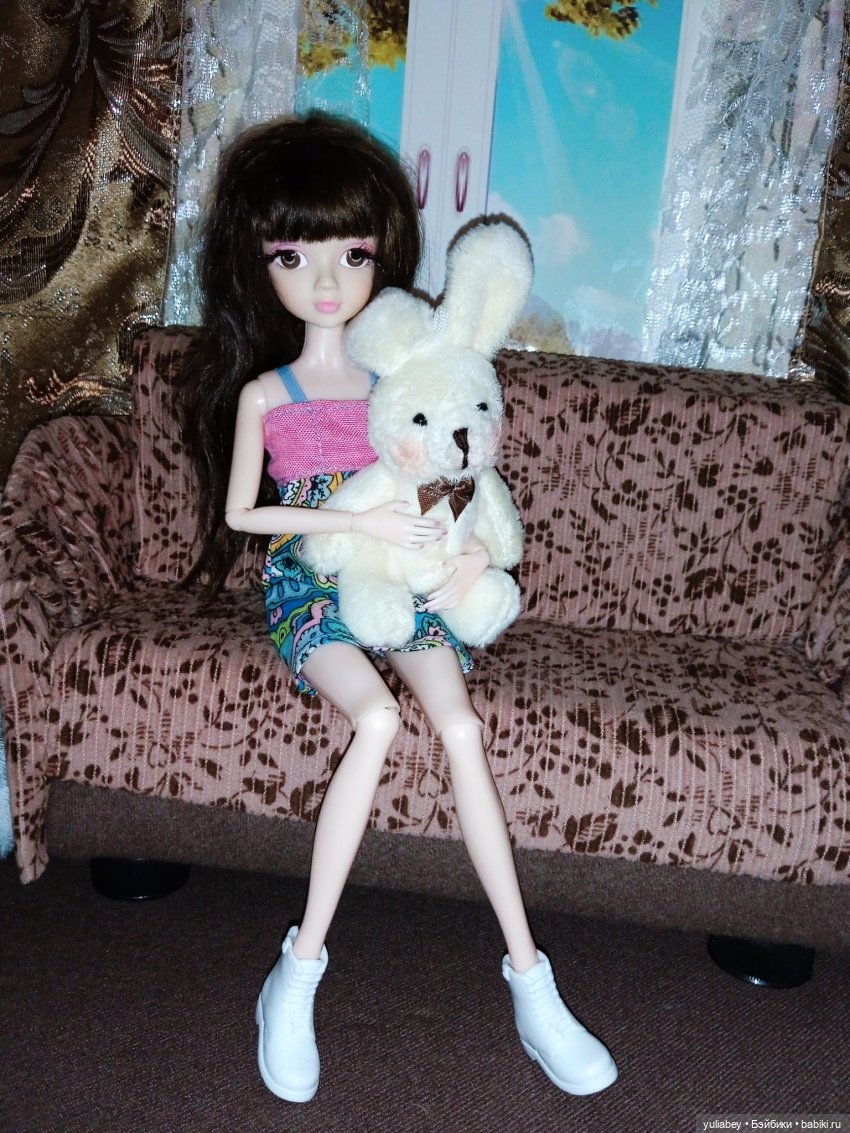На этот раз скинтон подошёл моей любимой хип-хопочке :) В отличии от тушки Fashion week, у этого тела нет сменных конечностей, а ещё у него другие коленные шарниры — не такие подвижные (сгибаются только на 90 градусов), но сидит куколка ровно и устойчиво.