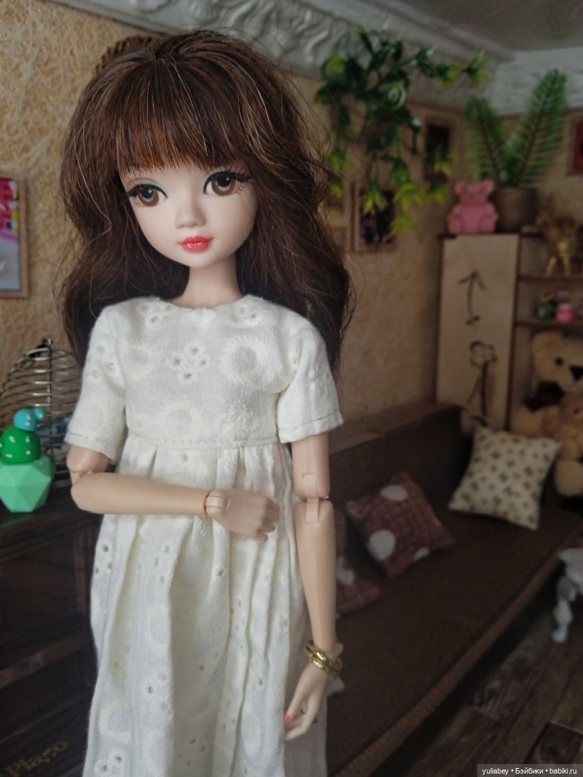 Сара была моей первой куклой, купленной для себя в магазине, и первой курняшкой в моём доме. И с самого начала она была именно Сара. Купила я её в Новосибирске, в 2009 году, очень давно, даже фото в коробке не сохранилось. Повелась на огромные зелёные глаза.
