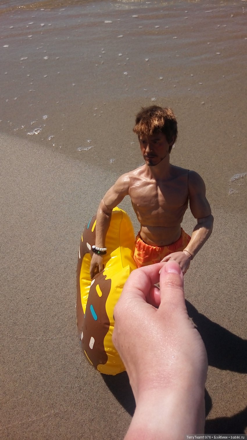 Улыбнула 5-я фотография, где надувная ватрушка как бы пытается укусить Тони за ноги!)))))
