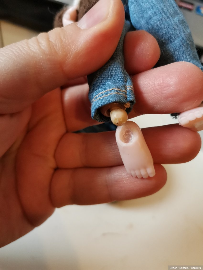 Пришлось брать в доноры Баболи тело. У стопы срезал полностью Шарнир и поосверлила в мягком виниле отверстие для шарика.