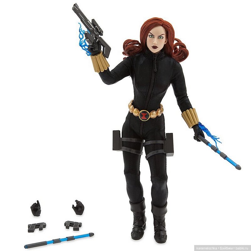 Жестовые руки и др. аксессуары, в плане подвижности — и локти, и коленки шарнирные (судя по видеообзору, который я смотрела). На актрису Скарлетт Йоханссон, которая играла соответствующую роль в кино, кукла мало похожа, куклу явно делали по рисовкам комикса. :)