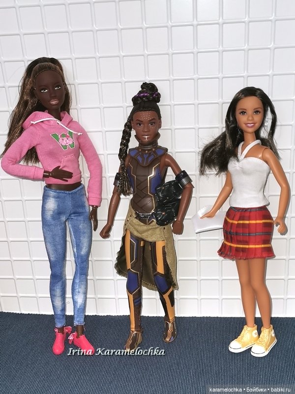 Хотя размер головы у Шури с маттеловскими взрослыми куклами (йогами) в принципе сочетается (тех же High School Musical гибридят на йог), и при желании можно было бы загибридить, чтобы сделать куклу именно игровой для участия в не Marvelовских историях, а также более модельной по пропорциям для частой смены имиджа, вот только скинтон подбирать придётся долго, производители всё-таки разные и палитра скинтонов у каждого своя. :)