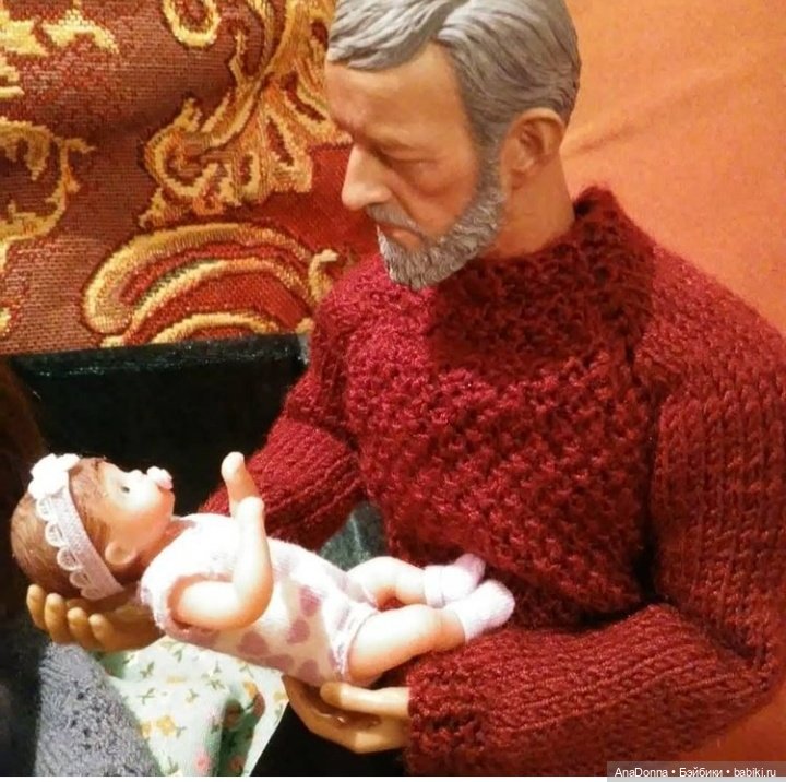 Здравствуйте! Давно я тут не появлялась. А ведь есть что показать и рассказать! И ещё на днях было 5 лет как я здесь зарегистрировалась. Надо бы сделать большой топик о всех моих кукложителях, но это позже. Когда все приедут)). А пока покажу вам дедулю. Приехал он недавно. Я настороженно к нему отнеслась… и он ко мне тоже;))). Но вот Сэмми сразу прилип к нему… и странное дело, колючий взгляд старика явно теплел рядом с пацаном! Ну что ж. Значит будут родней))).