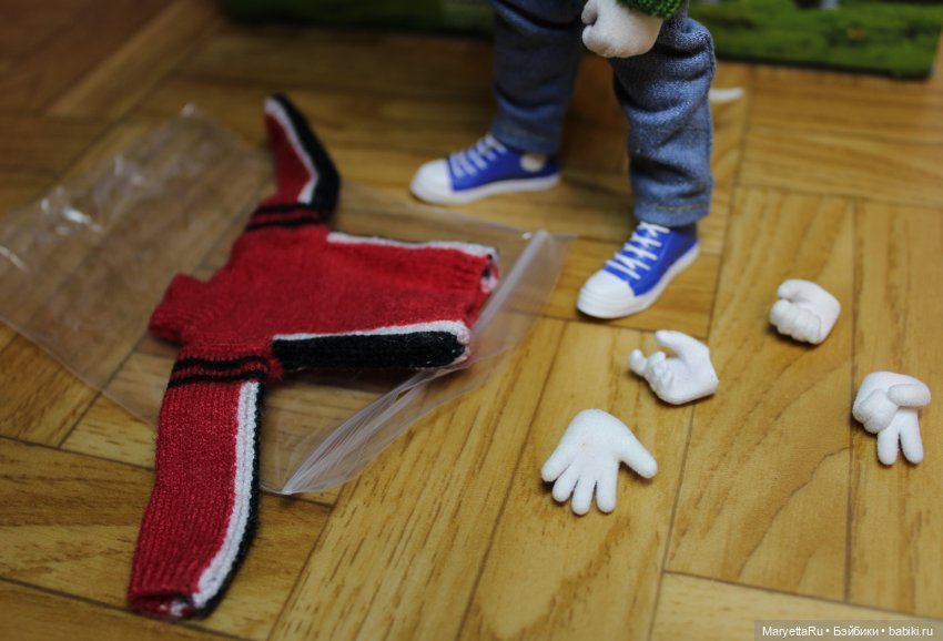 К телу прилагаются три пары кистей рук и пара стоп. Голова изумительно подходит к телоиду и даже может склоняться на бок и кивать.